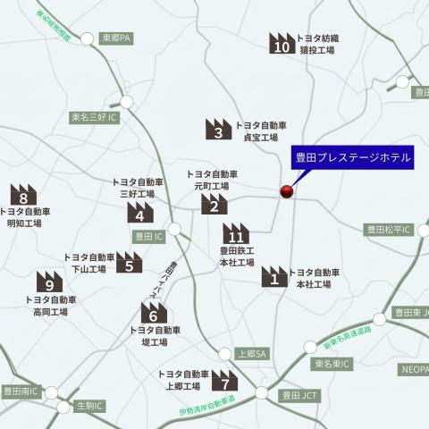 Googleマップ 豊田プレステージホテル ➡︎ トヨタ自動車 三好工場