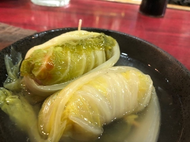 出てきたお料理は、大っきなロールキャベツとローストビーフ。