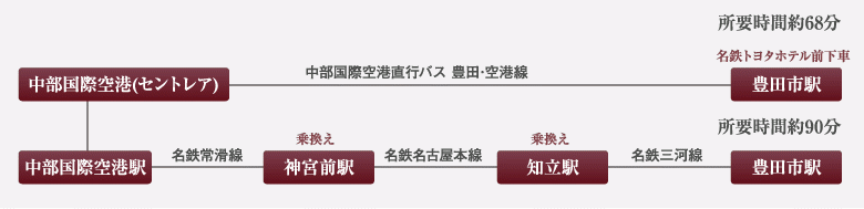 (The departure and arrival of the express bus to and from Central Japan International Airport are both at the Meitetsu Toyota Hotel. It takes about 5 minutes on foot from Toyota Prestige Hotel to Meitetsu Toyota Hotel.)