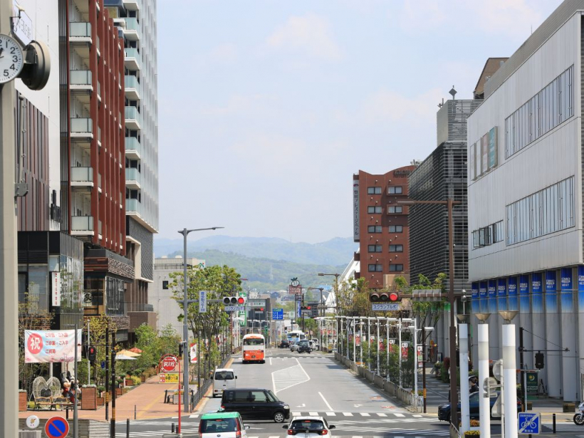 Go out of the only ticket gate from “Toyota city” station, and go to the left side (the east side, the rotary side).